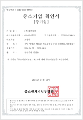- 뿌리기업 인증(국가뿌리산업진흥센터)